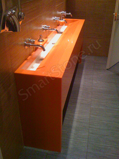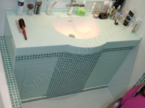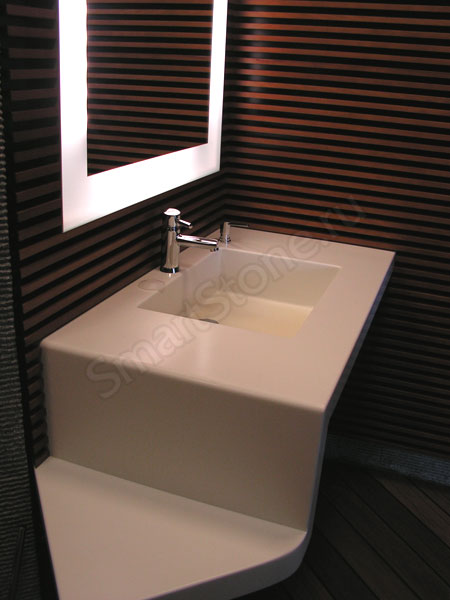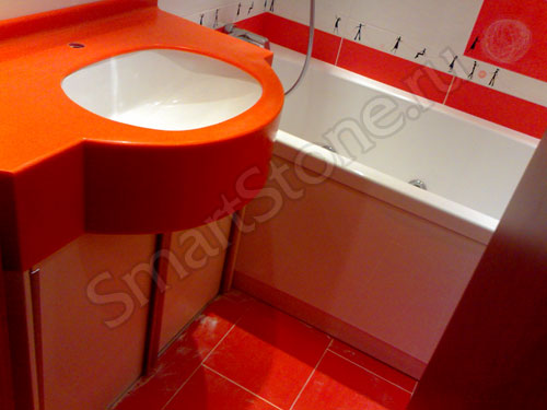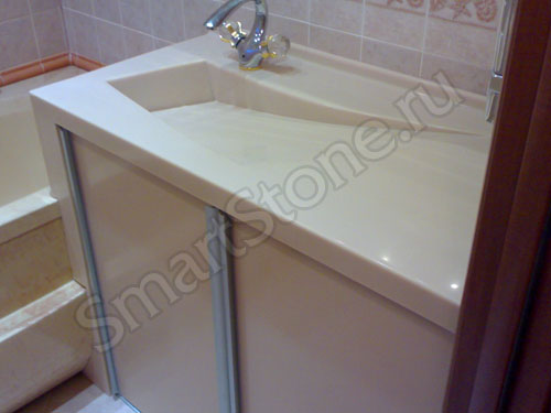 Изделия из искусственного камня для ванной комнаты позволят Вам не думать о протечках, щелях (в которых может завестись грибок от влаги), сложностях с уборкой, потому что все поверхности из искусственного камня абсолютно герметичные и гладкие. Искусственный камень один из немногих материалов, отвечающих всем запросам и хозяев ванной и дизайнера: гигиеничность, практичность, красота.