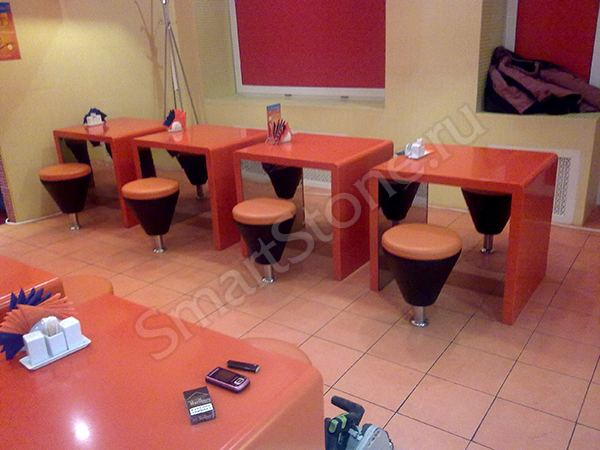 Столешницы, барные стойки, столы, подоконники и другие изделия из искусственного камня.